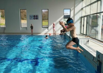 Tout au long de la période, les élèves se sont rendus deux fois par semaine à la piscine de Quintin pour suivre des séances de natation. Ces temps d’apprentissage ont permis à chacun de progresser à son rythme, que ce soit pour se familiariser avec l’eau, améliorer sa technique ou gagner en aisance. Les élèves ont fait preuve de motivation et d’implication, dans une ambiance sérieuse et dynamique.