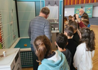 Au fil de la visite, les élèves ont exploré plusieurs espaces du quotidien : le garage, où ils ont identifié les risques liés aux produits dangereux, aux outils ou encore au rangement, la cuisine, avec ses dangers liés aux appareils électriques, aux objets coupants ou aux sources de chaleur, la salle de bain, propice aux risques de glissades, de brûlures ou d’intoxications, et enfin le salon, où l’attention s’est portée sur les chutes, les prises électriques ou les objets mal placés.