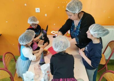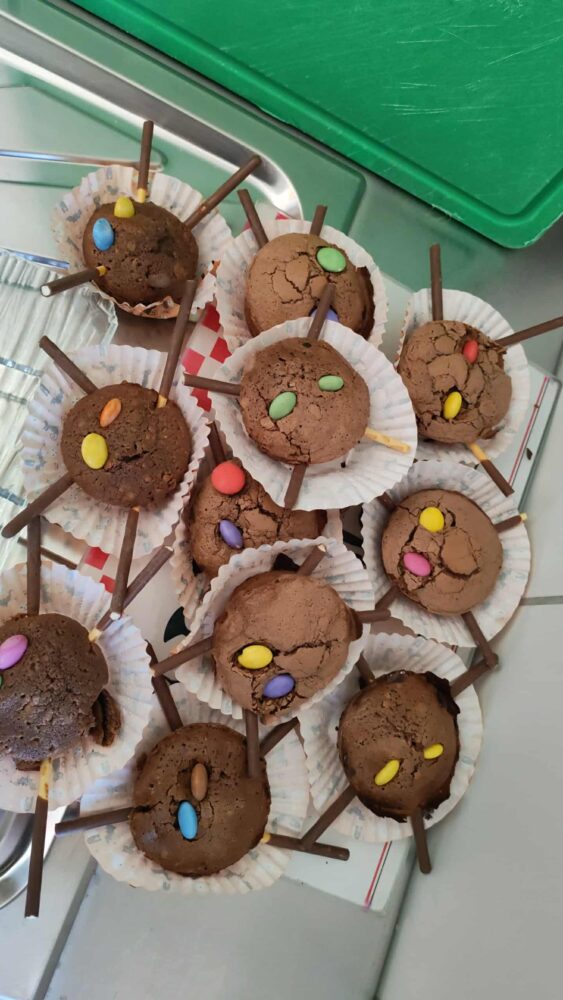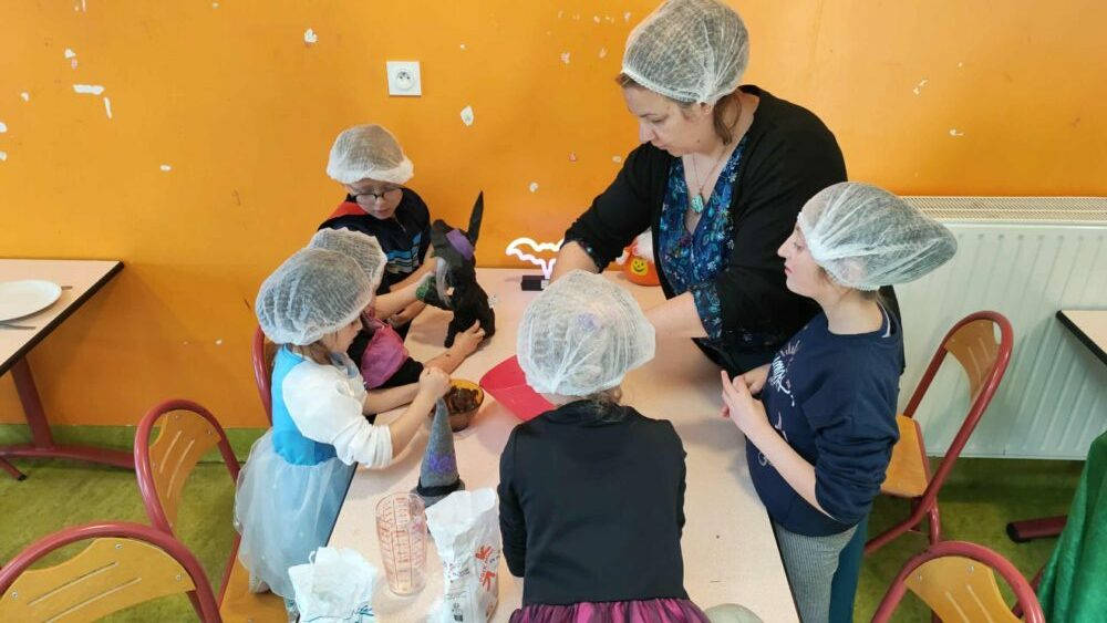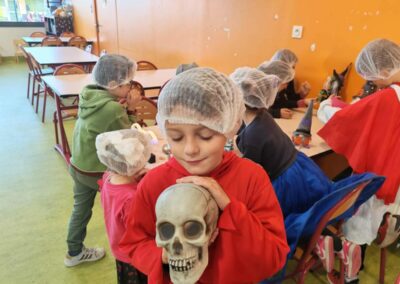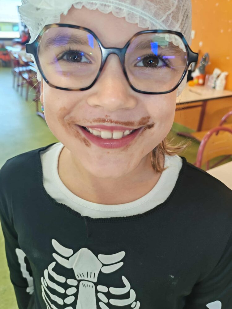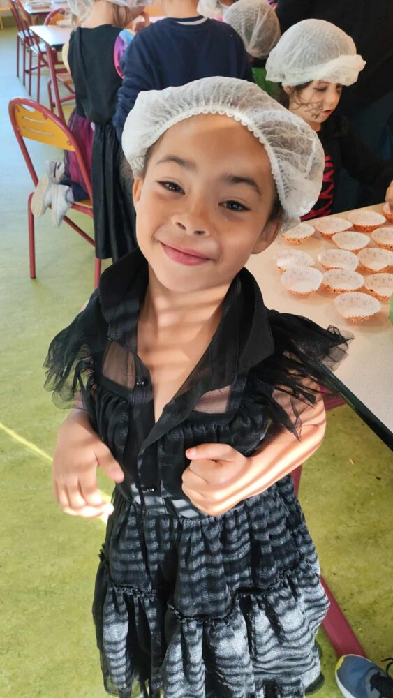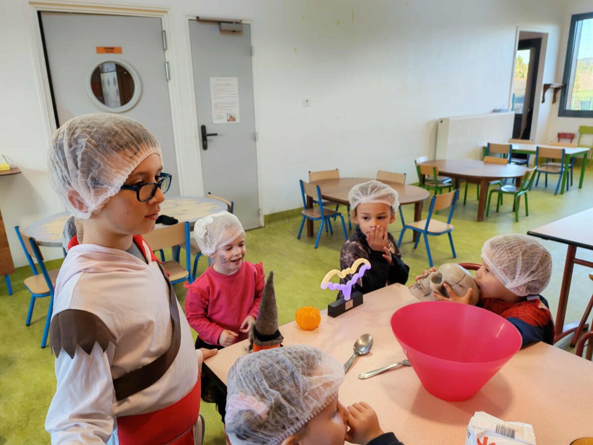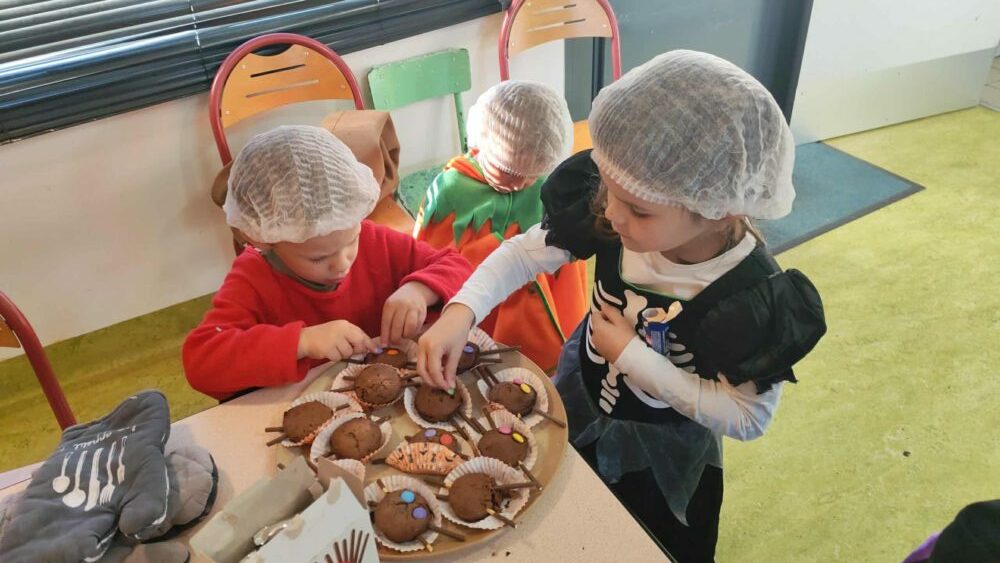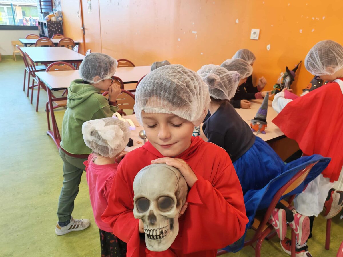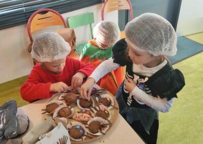 Atelier cuisine : les enfants ont préparé de délicieuses araignées chocolatées, soigneusement décorées avant d’être servies en dessert le midi à la cantine.